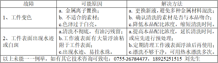 ①視工件表面油污程度及種類,確定工作液濃度;