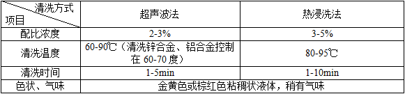 備注:溶液配制:加水于干凈的槽中,加熱 35-40℃左右,在攪拌下緩緩地加入所需的除蠟水,因除蠟水較難溶解,需要充分?jǐn)嚢杈鶆蚝笊郎刂列枰墓ぷ鳒囟燃纯梢允褂谩?/span>