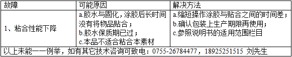 本品主要用于木材加工行業(yè)作粘合作用,也可用于纖維、印刷紙張、塑膠及其薄膜(PET、PS、PVC等)塑料、紡織、鋁箔、水泥、陶瓷等制品作粘合作用。