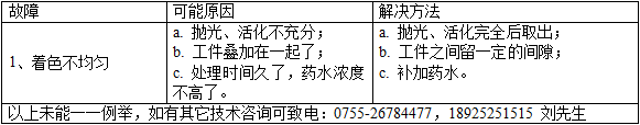 ①工件表面須將氧化層,油,蠟除盡后,進行著色。
